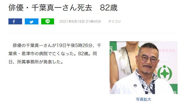 7 hours ago · 俳優の千葉真一(ちば・しんいち、本名前田禎穂=まえだ・さだほ)さんが19日午後5時26分、新型コロナウイルスによる肺炎のため千葉県の病院で.